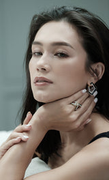 Origami Link no.5 Black Sapphire & Diamond Earrings (Medium)