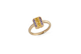 A striking and uplifting combination of perfectly cut princess-cut sapphires and baguette-cut fancy sapphires, this ring promises bold colors and originality. Uncompromisingly modern and exuding, the collection draws inspirations from works during the Cubism movement to the Abstract Art movement. Simple geometric forms and clean lines asserts the abstract style and composition of this collection.