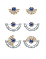 The double jacket concept truly encapsulates all the features of design: originality, functionality, innovation and aesthetics. The versatility allows one to transform a single pair of earrings into a myriad of styles. The double jackets have evidently expanded the boundaries of typical ear studs, and breathe new life into basic stud earrings. Most importantly, it gives you the liberty and freedom to transform and wear it your way.