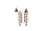 A striking combination of perfectly cut princess-cut ruby, fancy sapphire and baguette-cut pink sapphire and purple sapphire, this pair promises bold colors and uniqueness.Uncompromisingly modern and exuding, the collection draws inspirations from works during the Cubism movement to the Abstract Art movement. Simple geometric forms and clean lines asserts the abstract style and composition of this collection.