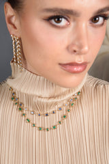 Mingle Emerald & Round Blue Sapphire Tennis Bolo Necklace