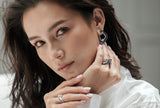 The collection has a distinctive Asian flavor with modern sensibilities, an aesthetic the designers are really proud of as they are both of Asian descent. Blurring the boundaries between traditional and contemporary jewelry, set in 18-karat gold, Link No.5 incorporates colorful gemstones and diamonds carefully angled within bold symmetric lines. The idea is to keep the design simple for everyday yet visually arresting and timeless.