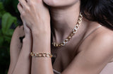 The collection has a distinctive Asian flavor with modern sensibilities, an aesthetic the designers are really proud of as they are both of Asian descent. Blurring the boundaries between traditional and contemporary jewelry, set in 18-karat gold, Link No.5 incorporates colorful gemstones and diamonds carefully angled within bold symmetric lines. The idea is to keep the design simple for everyday yet visually arresting and timeless.
