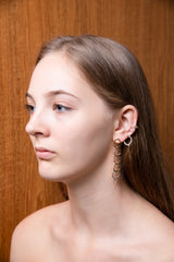 The collection has a distinctive Asian flavor with modern sensibilities, an aesthetic the designers are really proud of as they are both of Asian descent. Blurring the boundaries between traditional and contemporary jewelry, set in 18-karat gold, Link No.5 incorporates colorful gemstones and diamonds carefully angled within bold symmetric lines. The idea is to keep the design simple for everyday yet visually arresting and timeless.