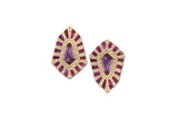 Twist Shield Purple and Pink Sapphire Diamond Stud Earrings