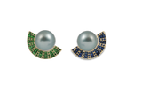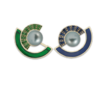 Blue Sapphire 0.86 ct Tsavorite 0.76 ct Gree-Blue Plique-a-jour Enamel